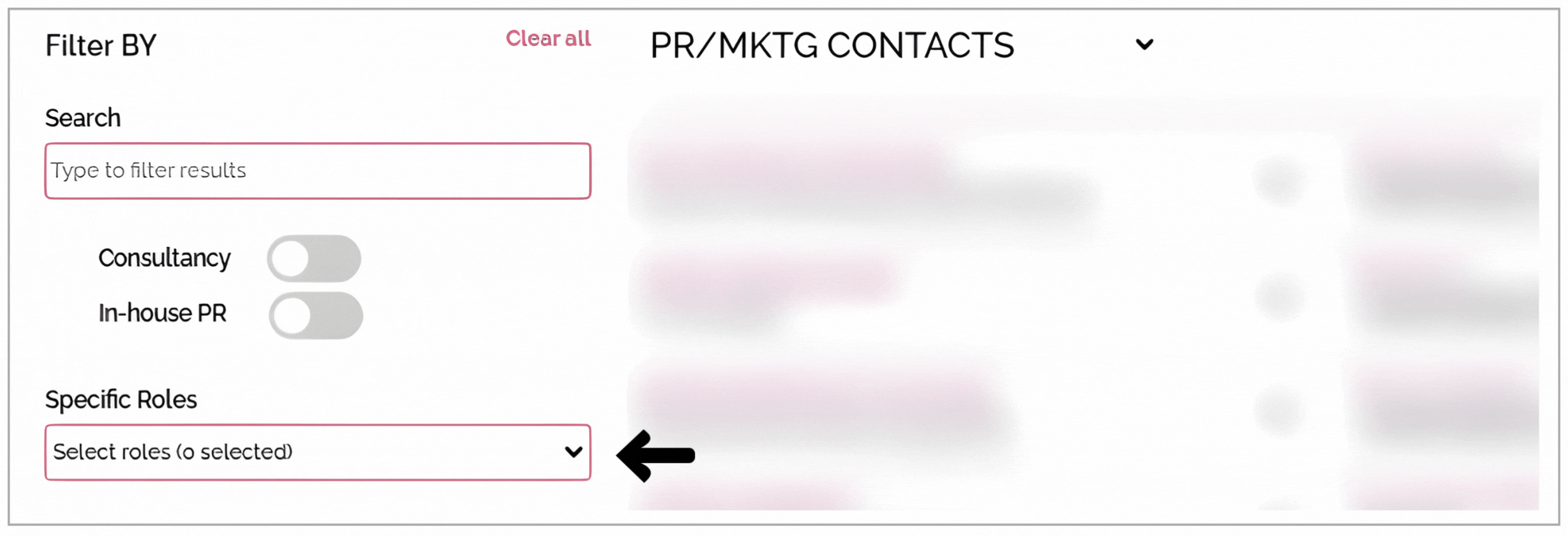 Look for the 'Specific Roles' filter when browsing PR and marketing contacts on Dd.